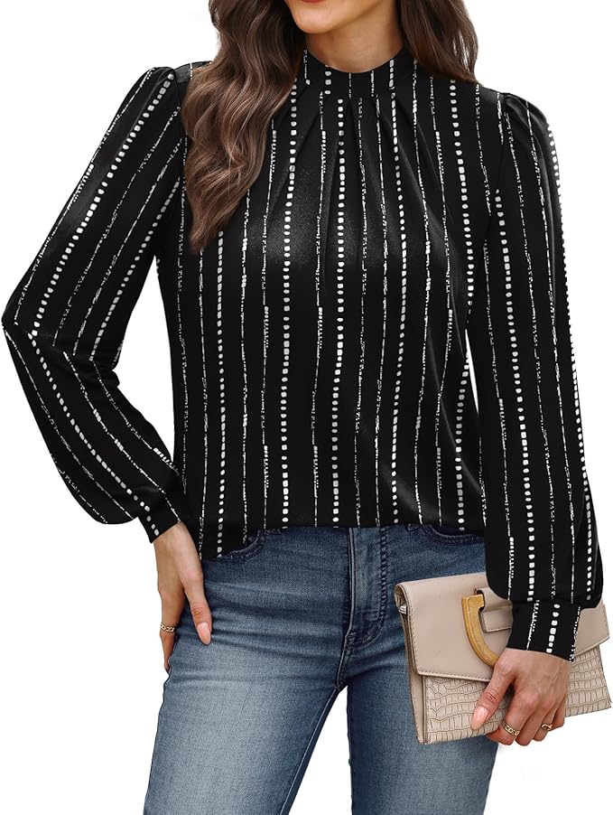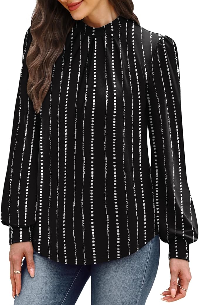 - Material: Crafted from 93% polyester and 7% spandex, this women’s blouse offers a lightweight and breathable feel with just the right amount of stretch. The fabric drapes beautifully without clinging—perfect for staying comfortable and polished from morning meetings to evening plans.