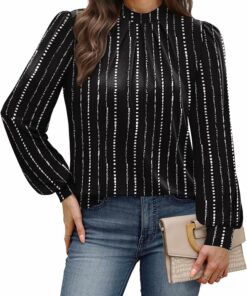 - Material: Crafted from 93% polyester and 7% spandex, this women’s blouse offers a lightweight and breathable feel with just the right amount of stretch. The fabric drapes beautifully without clinging—perfect for staying comfortable and polished from morning meetings to evening plans.